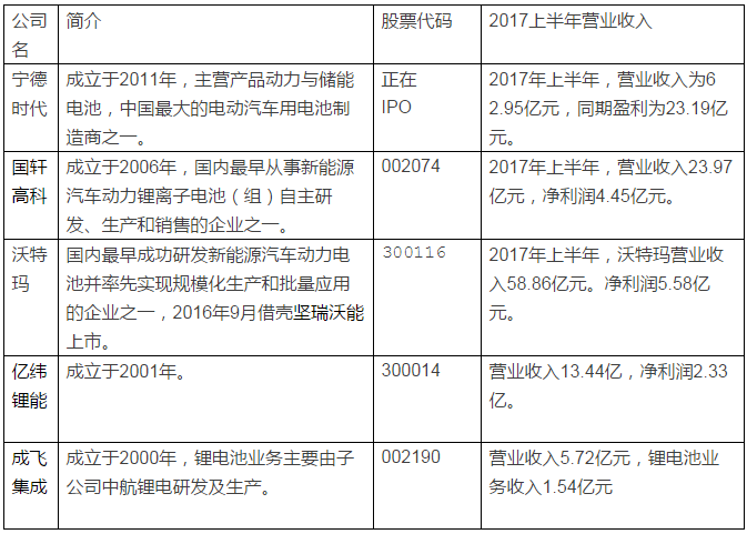 寧德時代營業收入主要組成部分來自于動力電池系統的銷售,如果將這家公司該部分經營情況與目前已經上市的四家公司——國軒高科、沃特瑪借殼的堅瑞沃能、億緯鋰能以及成飛集成相比,無論是從動力電池項目的營業收入還是相應的毛利水平來看,均可以說是“四英戰呂布”的局面。