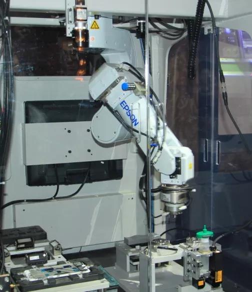 在此次創新大會上,愛普生展出了N2機器人在手機制造領域的解決方案,結合了SCARA機器人和6軸機器人的優點的N2,手腕可以旋轉180度以提高30%的循環時間,該產品最大負載2.5千克,可以同時執行多種作業。對作業精度和作業空間有較高要求的場所,N2機器人將是最好的選擇。