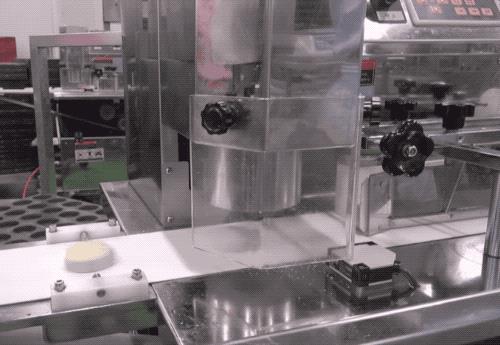 面皮包餡:流水線包球機上有兩個料斗,分別放面團和餡料(上等薄皮綠豆搭配上等咸蛋黃)
